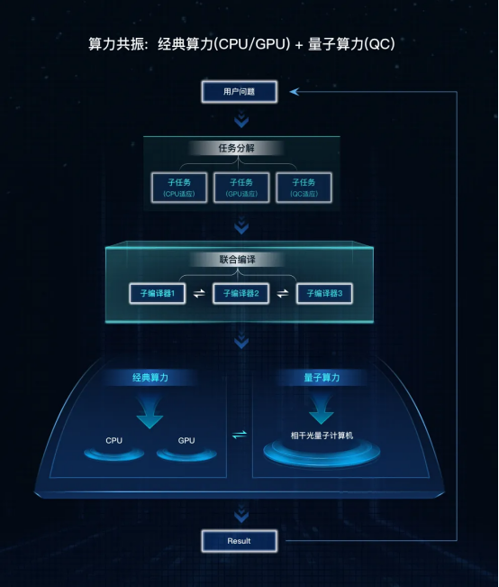 基于該算力硬件基礎,項目將研發統一的算力資源管理與調度云平臺,通過底層算法邏輯自動拆解計算任務,實現量子-經典混合算力的無縫調用。這一創新設計將使用戶能夠在完全“無感”的狀態下調用混合算力,極大地降低量子計算資源的使用門檻,真正提高量子計算的普及性和實用性。