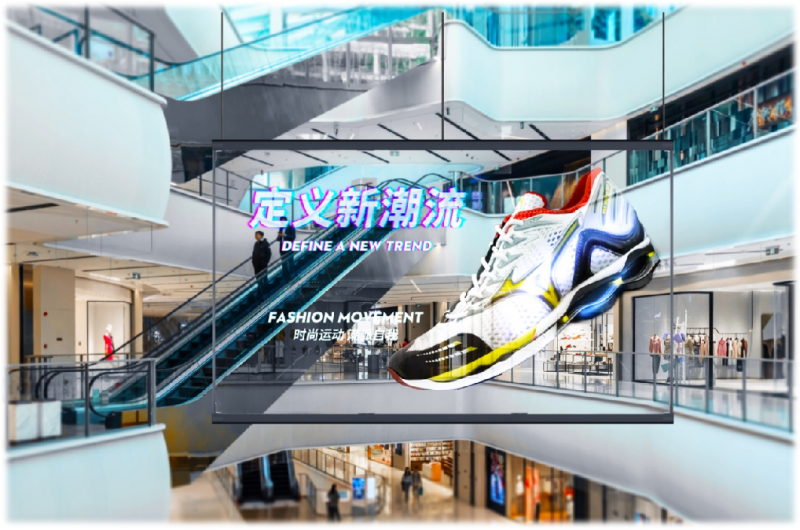全息透明屏的走紅并非偶然,它既能呈現 LED 屏的高清畫質;又具備超 90% 的通透性,兼顧采光通風功能。它如同空氣般融入環境,沒有壓迫感、繁重感,不會造成空間的逼仄感,不管是大型商場、體育場還是展館展廳,都能兼顧實用與顏值,自帶時尚酷潮屬性。