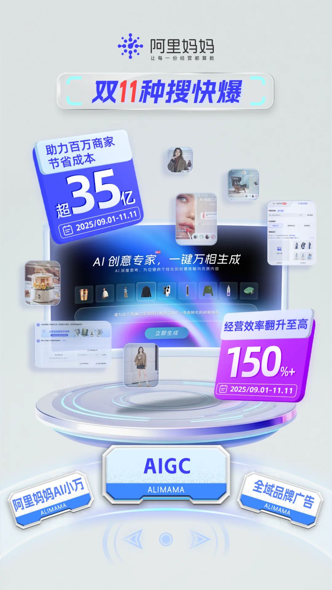 值得關注的是,備受商家好評的AI工具全方位助力大促經營提效。AIGC助力百萬商家節省成本超35億,阿里媽媽AI小萬助力商家拿量增長超30%,ROI增長超40%。