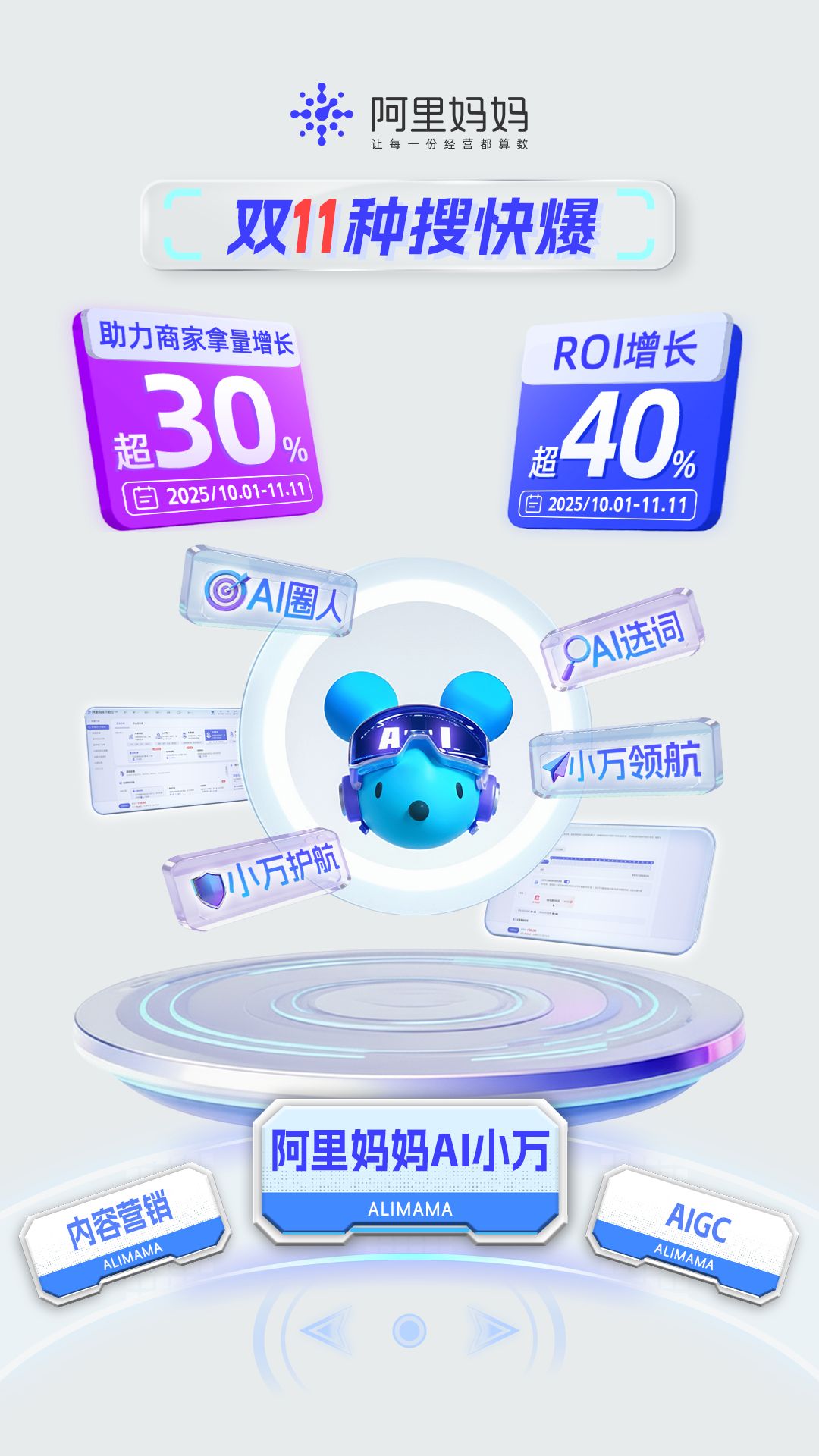 與此同時,智能經營管家助手「阿里媽媽AI小萬」成為商家經營“最強搭檔”。阿里媽媽AI小萬能力累計調用超1000萬次,服務200萬+商家提效經營,其中小萬護航能力完成計劃診斷調優80萬+次,問題解決率高達90%。阿里媽媽AI小萬累計為商家節約經營時間800萬個小時,平均單個商家提效4小時+,顯著提升投放效果。