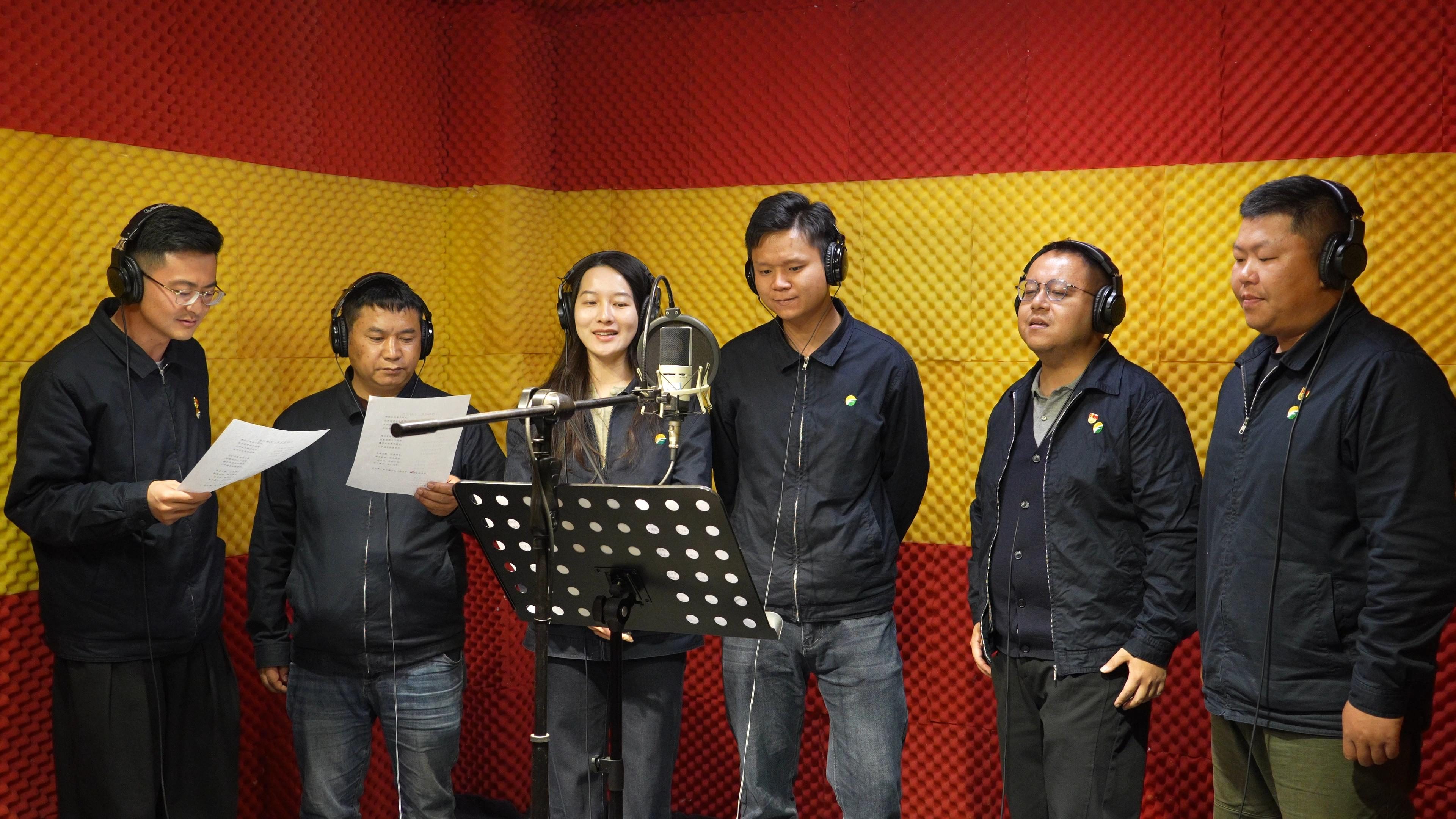(圖為職工錄制《制造之光 石林之光》歌曲畫面 胡岑/供圖)