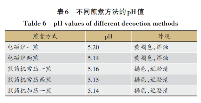 在藥液外觀和患者接受度方面,煎藥機煎煮的藥液澄清透明,而電磁爐煎煮的藥液較為渾濁。這種視覺上的差異直接影響患者的服用體驗。此外,煎藥機煎煮的藥液在pH值上也更為穩定。