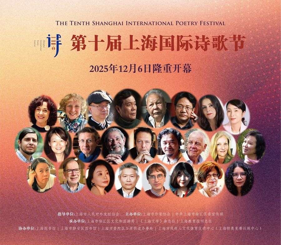 12月6日,第十屆上海國際詩歌節開幕式暨“金玉蘭”詩歌大獎頒獎典禮,將在徐匯濱江的“申城之光”游輪上舉行。在為期四天的活動中,還將分別在上海市作家協會、上海圖書館東館、普陀區萬里街道、靜安區圖書館、思南書局詩歌店、上海報業大廈、上海交通大學,上海書城等場所,舉辦《上海文學》第十屆上海國際詩歌節特刊首發式暨詩歌論壇、“AI 時代?詩歌之道”詩歌朗誦會、“詩風萬里”詩人進社區采風與互動、世界四大國際詩歌節峰會論壇暨“詩的建筑”展會、“海風萬里連詩情”——中國和拉丁美洲的詩歌交流互鑒、“詩歌之光”讀者見面會、“詩歌與傳媒”訪談會、“詩歌之橋”詩人與大學生懇談會,以及第十屆上海國際詩歌節暨 2025 上海市“陽光悅讀”殘疾人讀書系列活動閉幕式等精彩紛呈的文學活動。