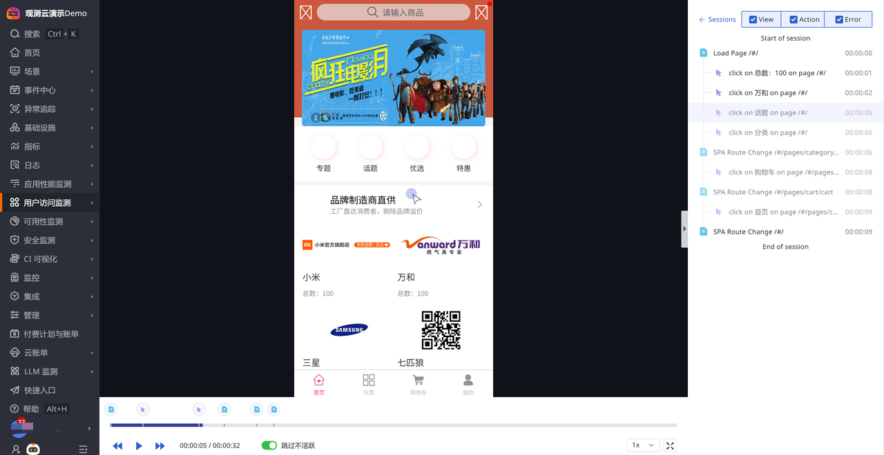● 全鏈路監控:從用戶行為到網絡請求,從頁面加載到錯誤追蹤,全方位覆蓋