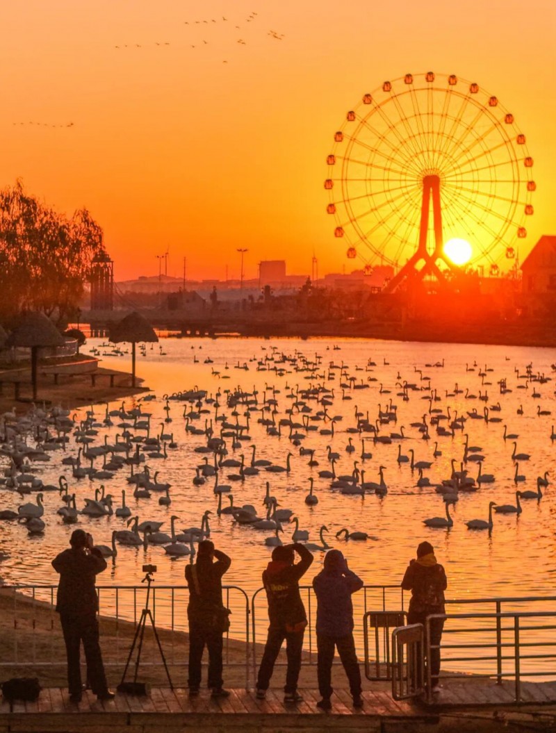 夜幕降臨,景區燈光漸起,去尋找那些閃閃發光的“天鵝們”吧,為冬日的夜晚增加一絲浪漫的氛圍。