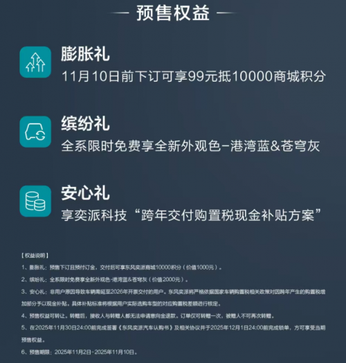 對于首次購車的年輕人而言,eπ007+提供了一個“一步到位”的選擇:既能滿足日常通勤與經濟性需求,也能在智能體驗與駕駛樂趣上帶來驚喜。該車已于2025年11月10日在深圳正式上市,限時煥新價:13.99 萬元起。為回饋用戶,官方推出限時購車豪禮:截至2025年11月30日前下單,可享超級置換補貼5000元、整車及三電終身質保、新車色限時免費升級等,總計至高價值46800元的八重豪禮。