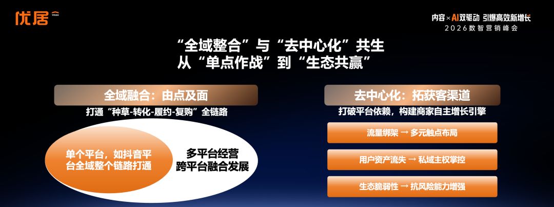 第二輪驅動:“全域整合”與“去中心化”共生。一方面打通線上線下全鏈路,實現認知、決策、交付、售后一體化;另一方面打破中心化傳播依賴,讓總部、門店、達人、用戶共同成為品牌聲量的傳播節點。