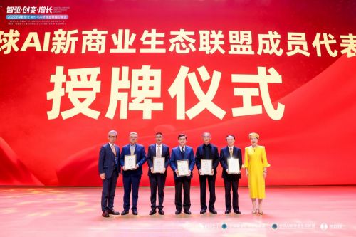 峰會期間,“全球AI新商業生態聯盟”正式成立并舉行授牌儀式,旨在促進跨領域合作,共建開放、協同、繁榮的AI新商業生態。