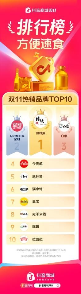 在剛落下落幕的雙十一電商大促中,西餐速食領軍品牌空刻再次展現強勁增長:全周期全平臺銷售額沖破2億元大關,連續6年蟬聯天貓、抖音、京東意大利面類目TOP1!并摘得天貓糧油速食類目TOP1、抖音方便速食類目TOP2。值得一提的是,此次空刻憑借西餐速食品類身份,成功躍居天貓美食店鋪成交榜TOP2,與零食、咖啡等高復購快消品并肩而立,不僅彰顯了品類領先地位,更印證了品牌戰略布局的前瞻與高效。