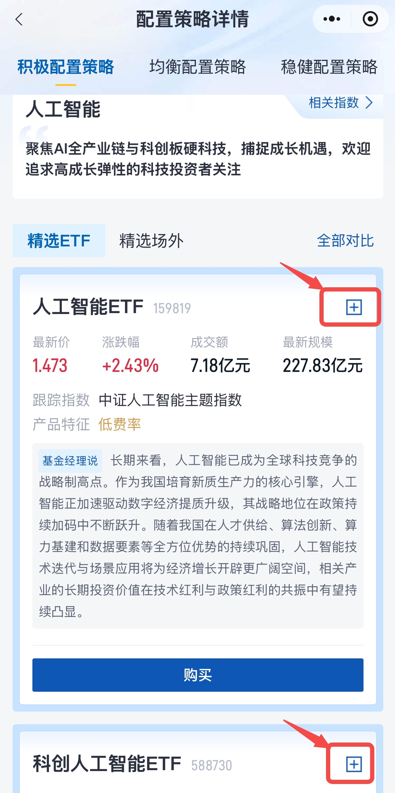 此外,在精選專區瀏覽熱門精選和配置策略的產品時,也可直接將產品添加到自選列表。