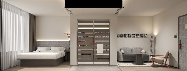 2. 靈活多變,超越期待:客廳的沙發床設計讓空間功能隨需而變。在25-30㎡的精巧空間內,通過更功能化的布局與更具設計感的氛圍,傳遞出“優于標準間”的尊享感和性價比,實現以小的升級換取體驗的躍遷。