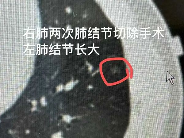 52歲的梁叔(化名)兩年前被診斷出雙肺多發結節,其中右肺結節屬于高危類型。當時,他接受了右上肺與右下肺的楔形切除術,病理結果顯示:(右上肺)原位腺癌、(右下肺腫物)慢性肉芽腫性炎。術后,梁叔定期復查,但發現左肺結節仍在緩慢增大,于是來到廣州復大腫瘤醫院尋求進一步診治。