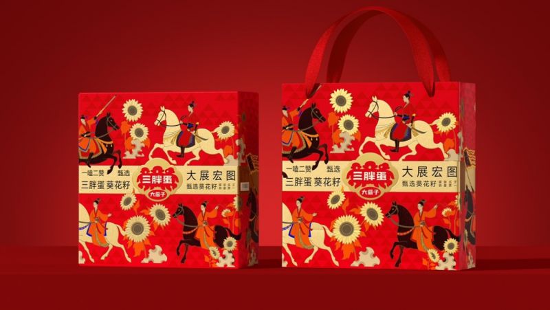2025年三胖蛋新春禮品禮盒品鑒會,重點聚焦產品升級,以“產業賦能+文化賦能+視覺賦能”構建高端競爭壁壘:在產品端,深度綁定向日葵全產業鏈,通過立體式工藝凸顯原料質感,搭配多元組合形態,將全產業鏈優勢轉化為高端產品硬實力;在文化端,錨定新春消費場景,深挖品牌原產地基因——作為內蒙古企業,將“蒙古馬精神”與馬年美好寓意深度融合,既以“穩扎穩打”彰顯全產業鏈的深厚底氣,以“一馬當先”傳遞創新突破的發展魄力,更借“馬上奪魁”“馬到成功”“龍馬精神”的吉祥寓意,呼應國人對新春順遂的期盼,同時緊扣春節“嗑點好瓜子”的民俗需求,傳遞大富大貴、大吉大利、闔家團圓的情感共鳴;在視覺端,以紅色烘托節日喜慶氛圍,用金色強化高端視覺沖擊,精準契合中國人對節日禮品“顏值與內涵兼具”的需求。