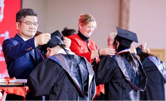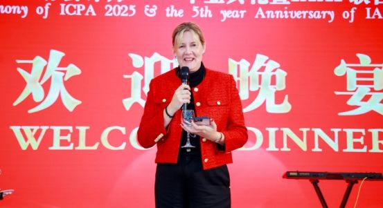 晚宴致辭環節,英國IAB集團首席執行官Sarah Palmer女士登臺舉盞祝酒,她向全體畢業生提出“錨定高遠職業坐標、深耕專業價值領域”的發展期許,致以“前程璀璨、行業建功”的誠摯祝福。在她的倡議下,在場嘉賓與學員共同舉杯,為盛典圓滿舉辦、為行業人才梯隊壯大喝彩。