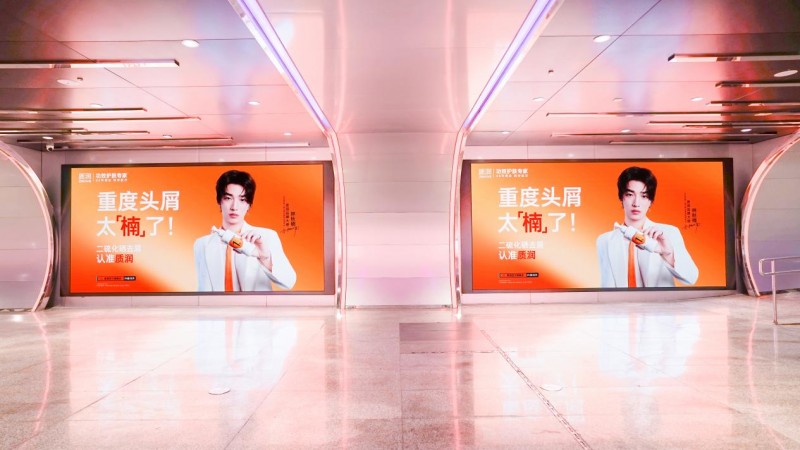 一是品牌代言廣告選擇了落地杭州湖濱銀泰in77光影藝術長廊——這里作為全國核心商圈,不僅是年輕消費群體的聚集地,更是品牌實力的“展示窗口”,強化了品牌影響力;二是大屏以“1%二硫化硒去屑洗發水全國銷量第一”為核心信息,并搭配林秋楠的專業形象,完成了“核心場景曝光 + 權威認知傳遞 + 用戶信任建立”的三重營銷目標。