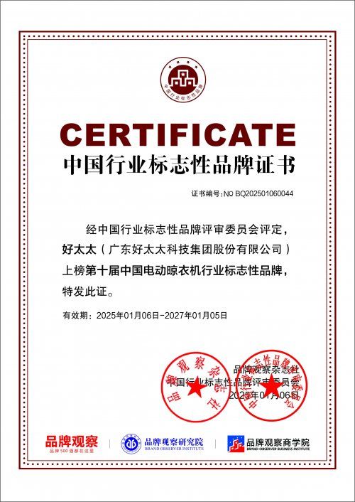 如今,好太太已構建起智能晾衣機、智能鎖為核心等多元產品的智能家居生態,憑借ISO9001、ISO14001等多項體系認證,為用戶打造充滿人文關懷的智能生活空間。未來,好太太將繼續以“成為全球領先的智能家居企業”為愿景,深耕技術創新,拓展服務邊界,讓更多家庭享受到科技帶來的美好生活。