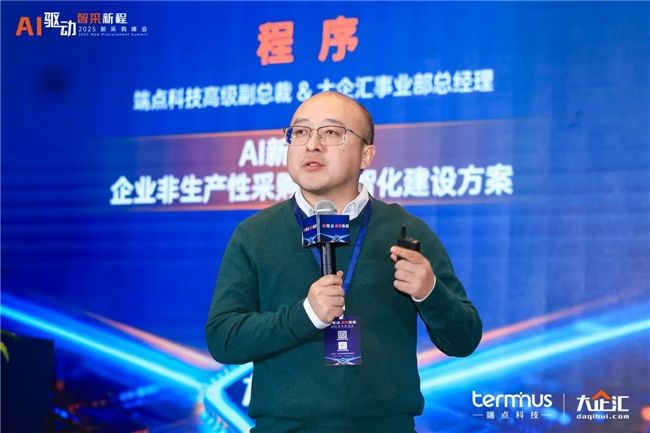 端點科技高級副總裁&大企匯事業部總經理程序在《AI新時代下,企業非生產性采購的數智化建設方案》演講中指出企業采購數智化的目標是 “實現事務性采購自動化、戰略性采購智慧化”,并系統闡釋了AI如何在尋源、比價、風控乃至物料主數據治理等環節替代重復勞動、賦能決策,強調應讓采購人員聚焦高價值的戰略工作,從而推動采購部門從“成本中心”向“價值創造中心”的根本轉型。