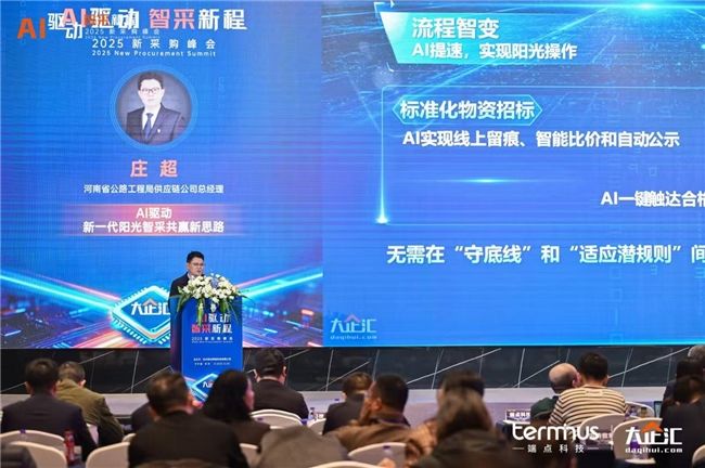 河南省公路工程局供應鏈公司總經理莊超在《AI驅動,新一代陽光智采共贏新思路》分享中,以“正念共贏”為核心闡述AI如何重塑采購生態, AI賦能采購正將集中采購從利益“博弈場”重塑為協同“共贏圈”。通過全流程透明化與智能風控,AI不僅筑牢了廉政防線,更賦能年輕從業者從執行者成長為戰略引領者,在“陽光采購”中實現個人與企業的共同價值提升。