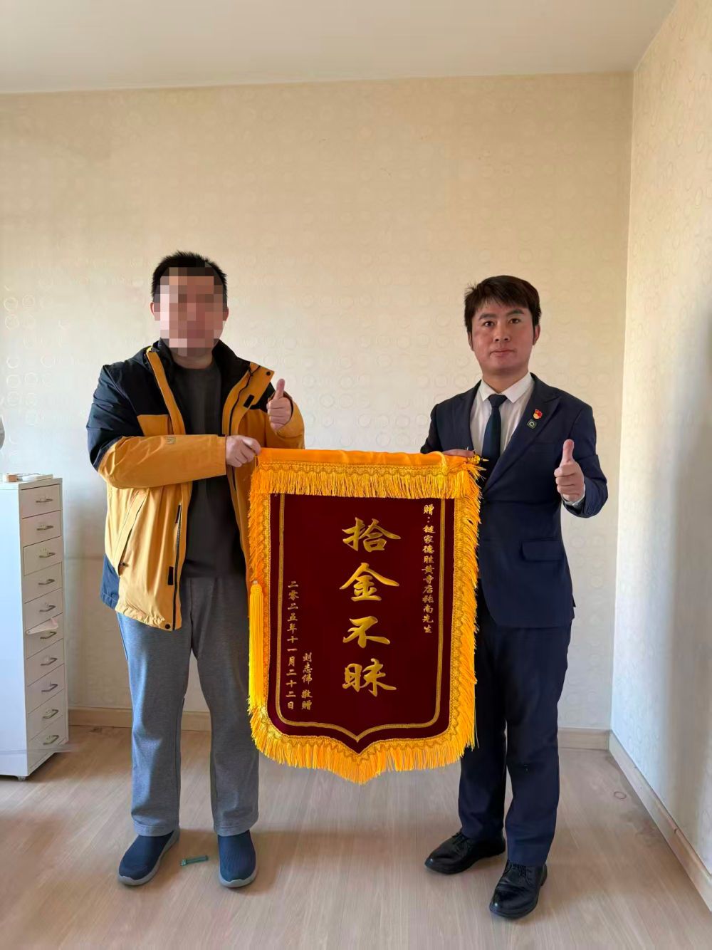“太感謝你們了,我自己都忘了家里還有這些錢和郵票了。”11月22日,市民劉先生專程來到北京鏈家安德路一店 ,將一面寫有“拾金不昧”四個大字的錦旗送到鏈家經紀人張南手中,感謝他發現家中的2萬多元現金和幾套珍貴郵票。