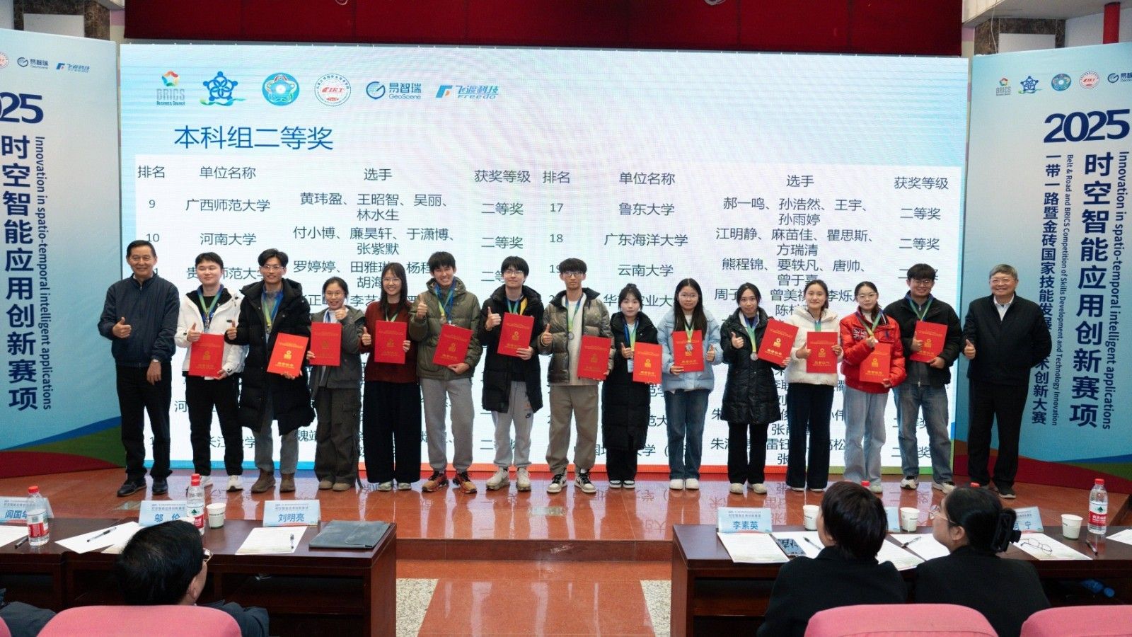12月5-7日,2025一帶一路暨金磚國家技能發展與技術創新大賽時空智能應用創新賽項在石家莊鐵路職業技術學院舉辦。本屆大賽由金磚國家工商理事會中方理事會、一帶一路暨金磚國家技能發展國際聯盟、“一帶一路”暨金磚國家技能發展與技術創新培訓中心主辦,中國發明協會與教育部中外人文交流中心聯合主辦,金磚國家工商理事會技能發展、應用技術與創新中方工作組承辦。時空智能應用創新賽項由石家莊鐵路職業技術學院、易智瑞信息技術有限公司、北京飛渡科技股份有限公司等單位聯合承辦。來自全國105所學校的131組隊伍,共計400多名選手同場競技。經嚴格審核,最終決出一等獎13項、二等獎26項、三等獎39項。