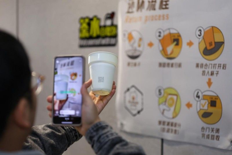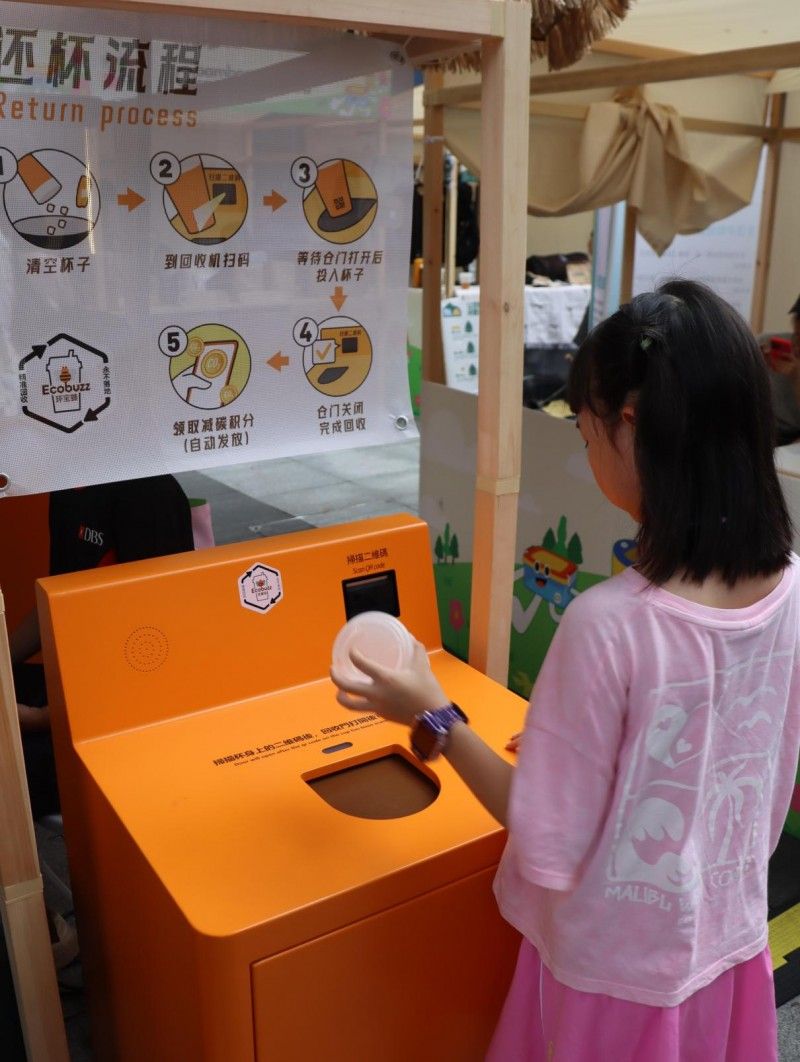 圖:廣州“重用日”市集上,公眾體驗循環杯借還流程。