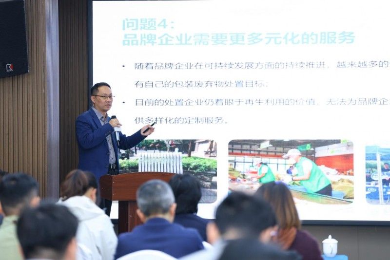 面對那些已經產生的低值廢棄物,商家有什么樣的減塑選擇?上海睿斯科環保技術有限公司總經理任愷圍繞連鎖咖啡茶飲門店低值廢棄物回收利用展開分享,指出當前存在高價值廢棄物受青睞、低值品無人問津,數據統計不規范、用戶需求年輕化、品牌需多元服務等痛點。他介紹了利樂等不同行業包裝回收案例,分析各類品牌回收的動因,對比了廢品交易、智能回收箱、線上回收等多種回收模式的優劣。“上海 400 余家連鎖品牌咖啡門店試點實踐說明,通過專項回收、分揀中心處理、資源化利用的路徑,可將門店廢棄物資源化利用率提升至 75%-90%。”