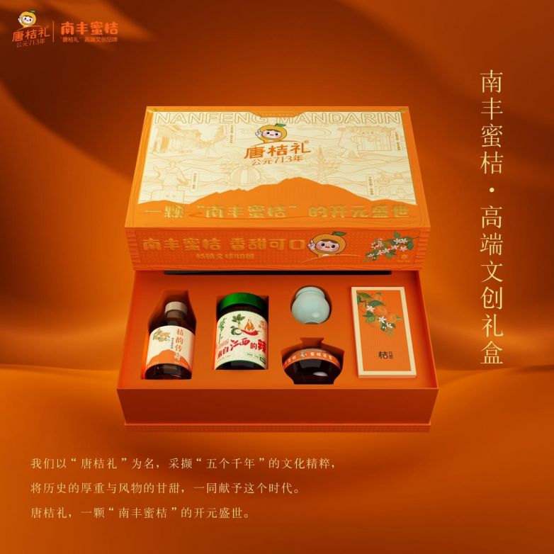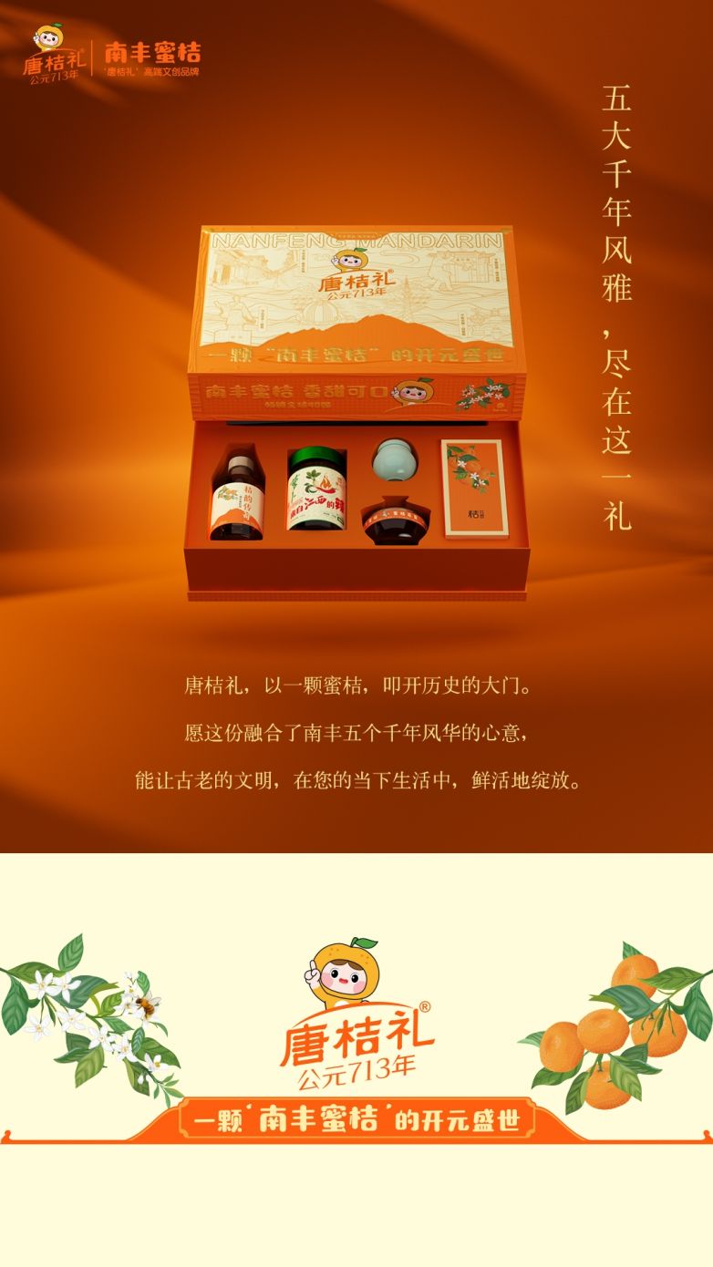 我們以“唐桔禮”為名,采擷“五個千年”的文化精粹,將歷史的厚重與風物的甘甜,一同獻予這個時代。唐桔禮,一顆“南豐蜜桔”的開元盛世。