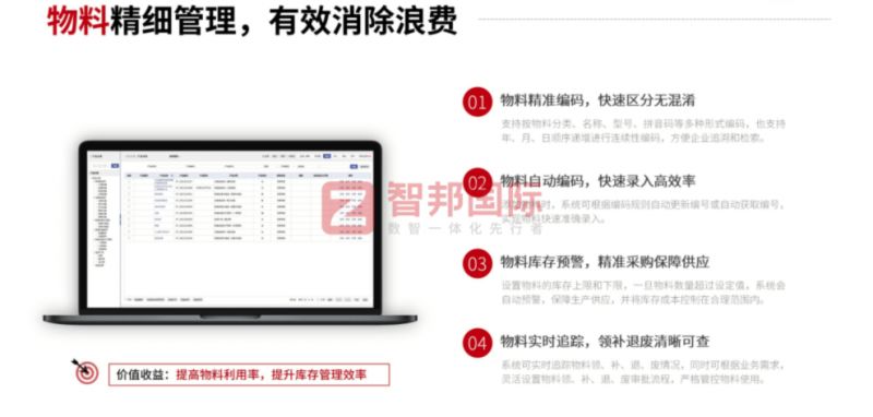 智邦國際一體化ERP的生產管理功能,以“降本增效”和“高質量發展”為核心雙路徑,為企業提供全方位的數字化支撐,實現管理價值與業務價值的同步提升。