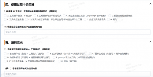 圖為:AI需求問卷內容節選