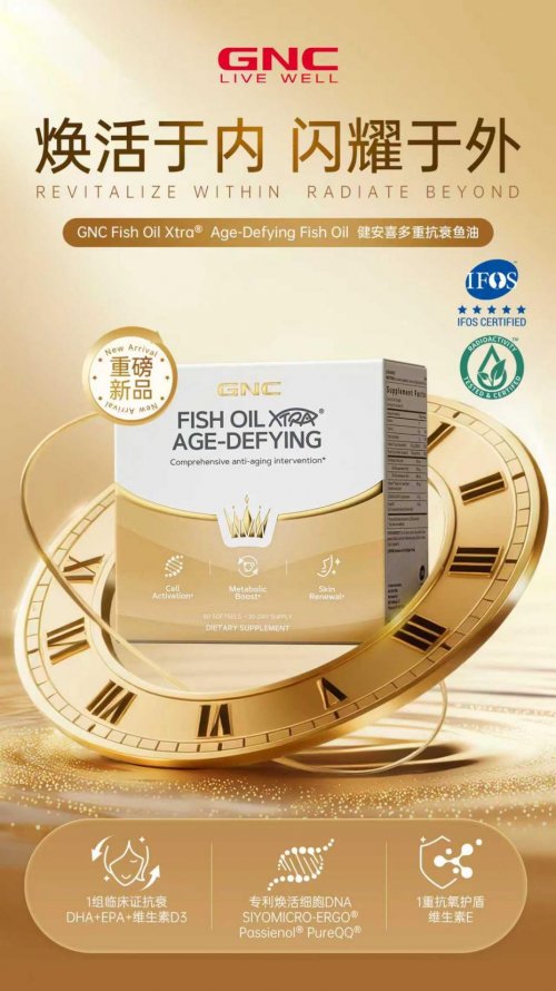 在第八屆中國國際進口博覽會(以下簡稱“進博會”)期間,全球領先的膳食營養補充劑品牌GNC健安喜亮相央視“進博新品匯”平臺,全球首發GNC Fish Oil Xtra?多重抗衰魚油(下稱“小金鉆”)。作為GNC旗下首款復配型魚油,該產品不僅標志著GNC對心腦血管健康領域的戰略聚焦,更旨在為市場開辟一條“由內而外”的全景抗衰新路徑。