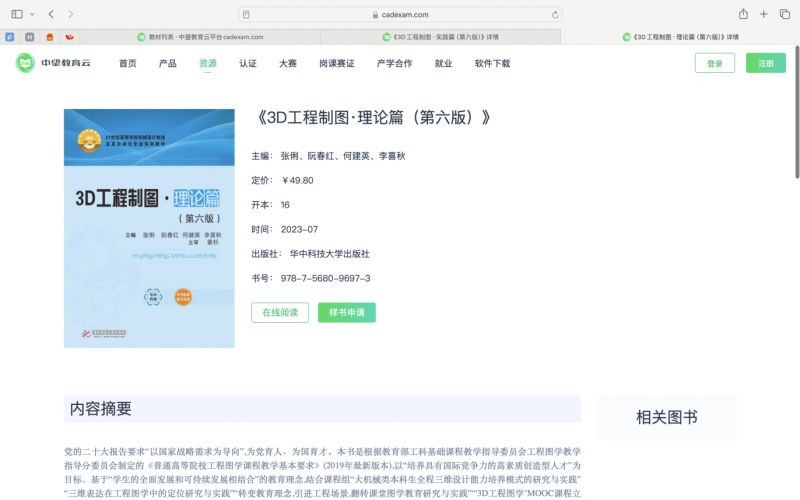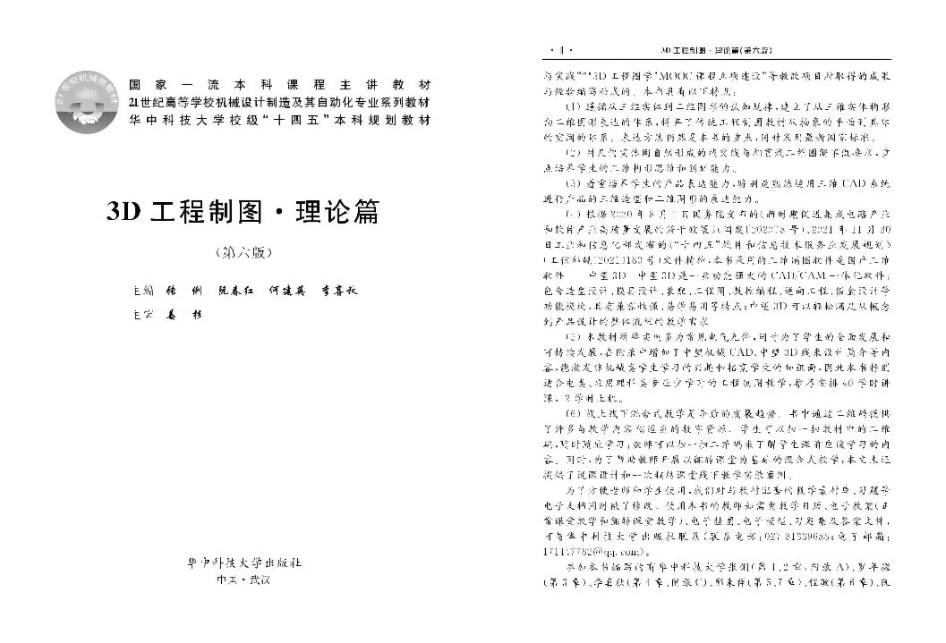 其中,張俐、阮春紅等多位教授編寫的《3D工程圖學?理論篇》教材目錄中明確了國產中望軟件的相關內容: