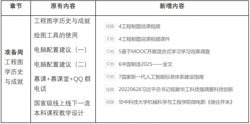 慕課教學新舊課程大綱對比,如下: