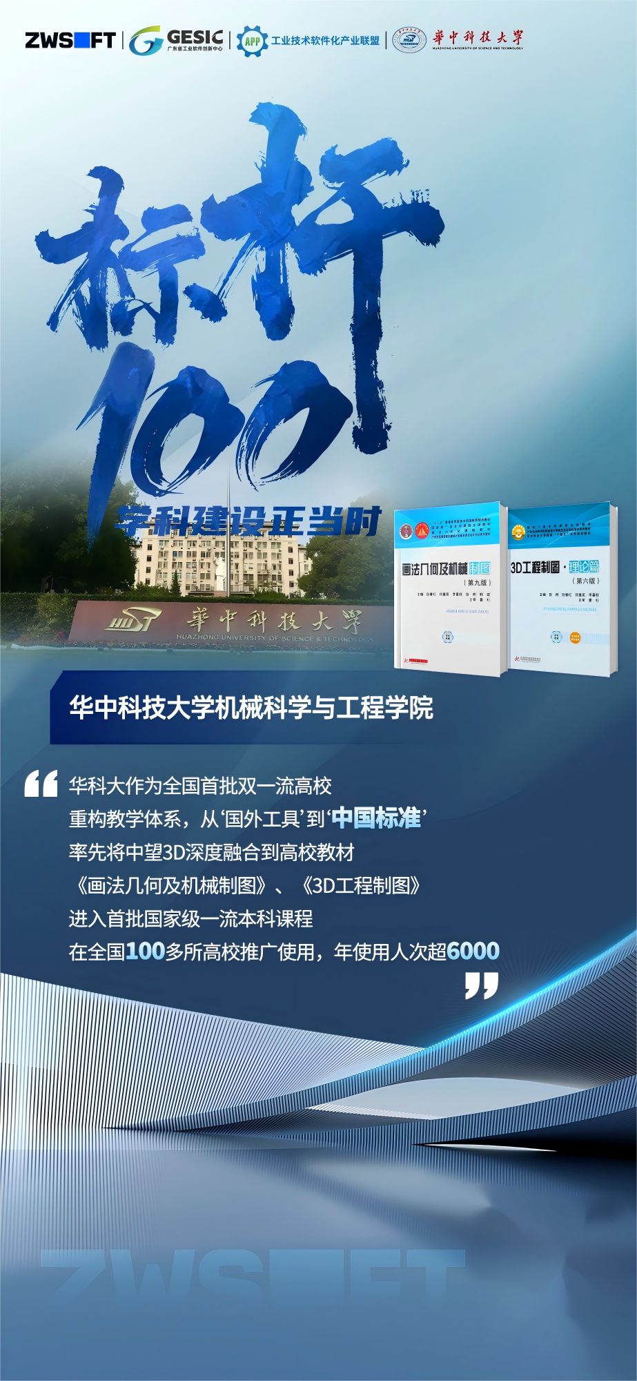 羅年猛介紹,圖學教育研究與發展中心主編的《畫法幾何及機械制圖》(由阮春紅、張俐、何建英、李喜秋聯合編寫)、《3D工程制圖》(由張俐、阮春紅、何建英、李喜秋、韓斌聯合編寫)兩套教材,已成為全國首批深度融合中望3D軟件的高校教材,進入首批國家級一流本科課程,在華中科技大學、解放軍海軍工程大學、昆明理工大學、武漢科技大學、解放軍陸軍工程大學、江南大學、武漢輕工大學、武漢工程大學、山西大學、浙江師范大學、青島理工大學、安徽建筑大學、湖南工商大學、中南民族大學、河南科技學院、桂林航空工業學院、山西工學院、湖南文理學院、武昌工學院、武昌首義學院等全國100多所高校推廣使用,得到師生的廣泛好評,年使用人次超6000。