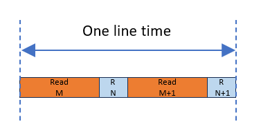 行時間是指sCMOS相機傳感器讀取并復位單行像素數據所需的時間,行時間是理解曝光時間、幀率和時序行為的關鍵參數。一個行時間的時序圖通常包含Read和Reset兩個階段,不同行之間時序結構一致。
