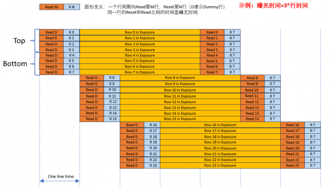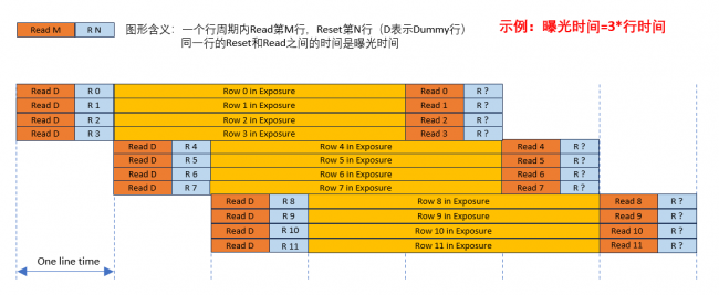 如果Reset Address和Read Address之間間隔了多個行時間,則曝光時間就等于 Exp_init + N * line_time。