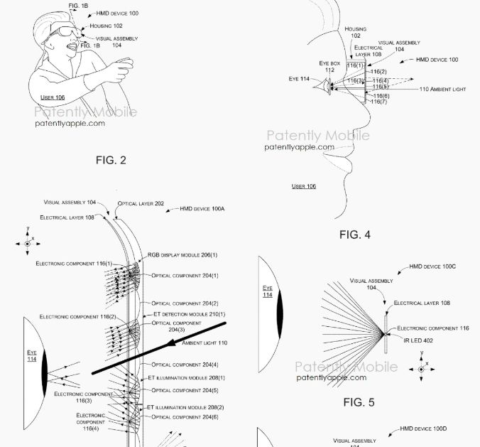 與此同時,近期,微軟(MSFT.US)公布了一項新專利。該專利描述了一種輕巧的智能眼鏡,它將紅外照明器、探測器、RGB顯示模塊以及微型反射鏡和透鏡等光學元件集成到一個透明的電子層中。