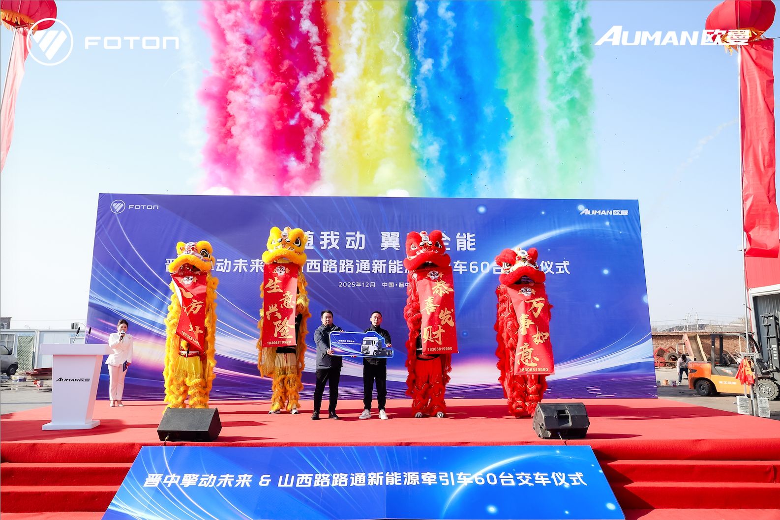 60 臺歐曼星翼新能源牽引車的批量交付,正是歐曼依托全場景適配能力、高效節能優勢與可靠品質保障的產品,為三晉大地物流產業注入強勁綠色動能的有力注腳。未來,歐曼將持續聚焦用戶降本增效需求,以更具競爭力的新能源產品與解決方案,助力物流行業低碳轉型,推動區域經濟高質量發展,書寫商用車領域綠色升級與價值創造的新篇章。