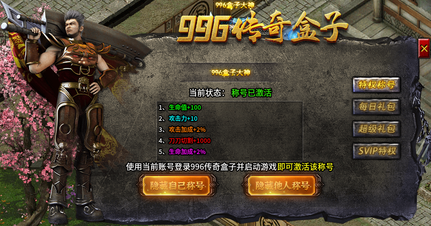 更有云掛機功能,不占手機存儲空間,還可24小時持續在線掛機。使用盒子登錄,還可免費獲得996傳奇大神稱號,每日領取豐富的禮包福利,助力贏在起跑線。