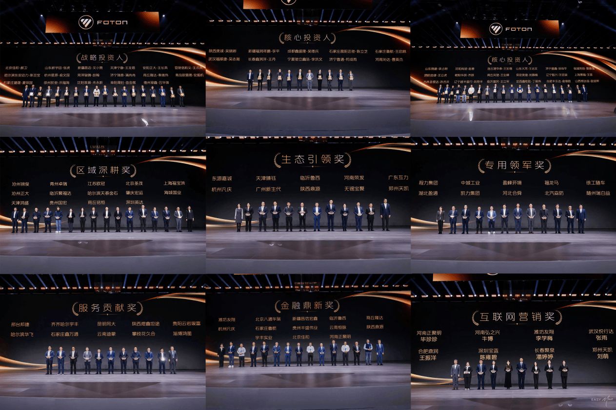 為凝聚合作伙伴共創未來的信心與決心,福田汽車常務副總經理鹿政華主持了核心投資人和戰略投資人授牌儀式,現場為45位長期與公司同頻共振的戰略及核心投資人授牌,他們將獲得"專屬政策支持、專業人才培養、戰略協同共創"等全方位賦能。同時,大會還對全年表現優異的經銷商分別授予"區域深耕獎"、"生態引領獎"、“專用領軍獎”、"服務貢獻獎"、“金融領航獎”、“互聯網營銷獎”榮譽。