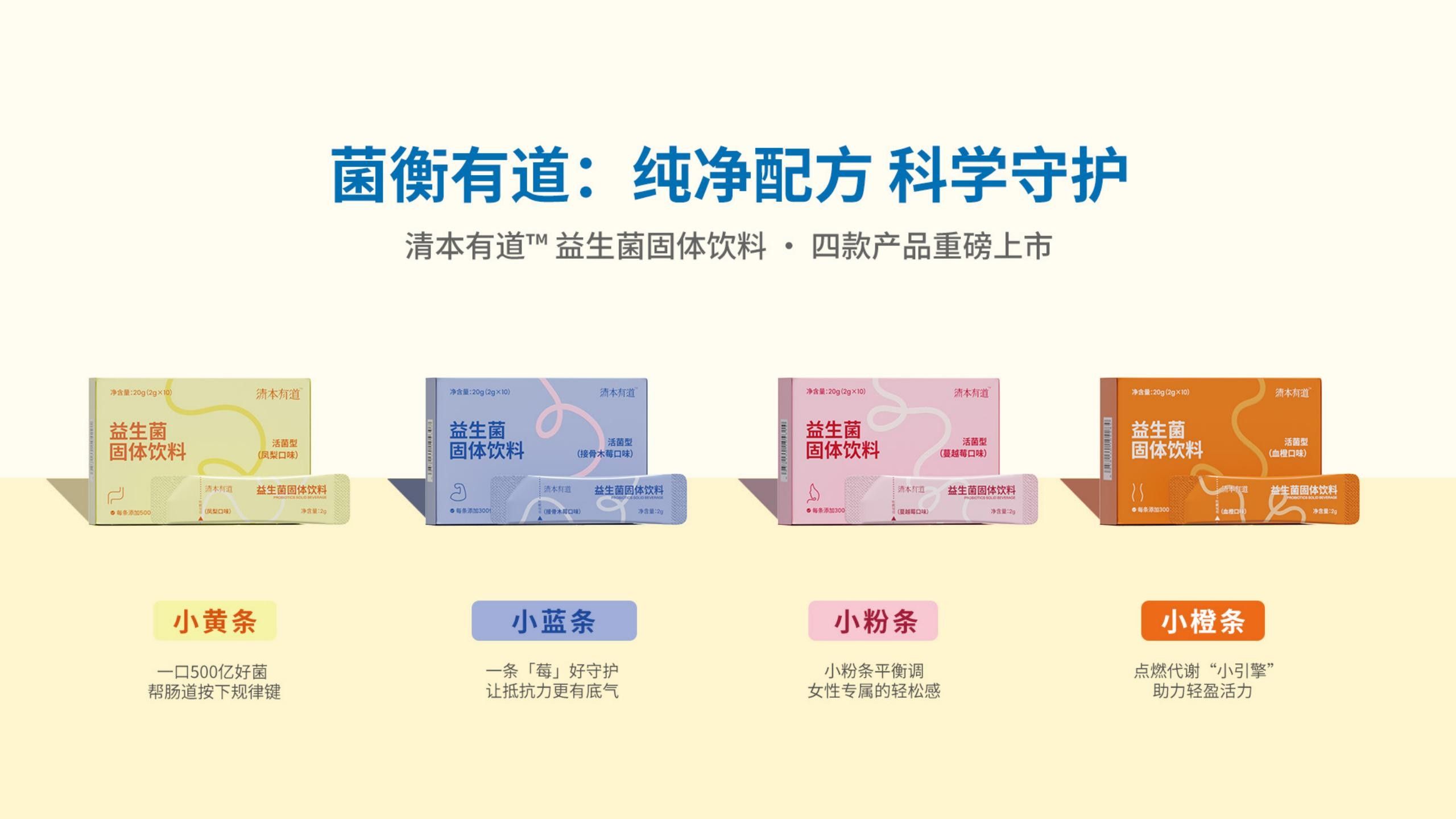 基于對消費者健康需求的深入洞察,清本有道益生菌系列推出了四款專業配方產品,每款產品均針對特定的健康關注點進行科學配比: