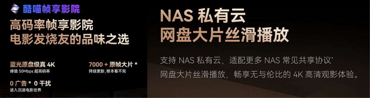 為了進一步滿足廣大影迷朋友們的全方位需求,創維A6F Pro+還支持通過創維NAS私有云或系統自帶的高碼率幀享影院觀看超清電影,從安全存儲到個人高清影庫,再到便捷獲取超高碼率片源,備齊一站式使用方案,真正發揮出創維A6F Pro+的強大實力。