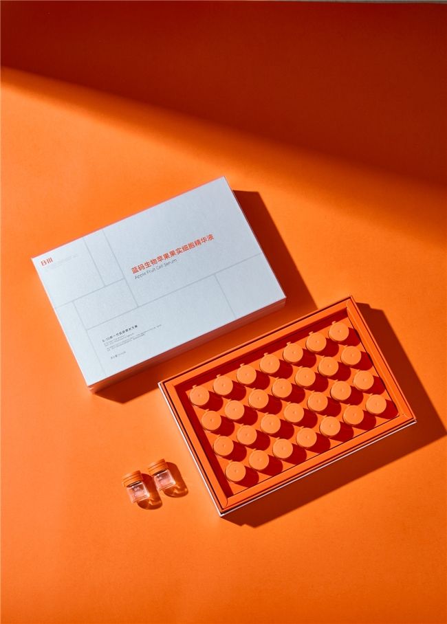 藍碼生物 B-III系列的第二款產品,藍碼生物蘋果果實細胞精華液,是一款高性能精華,其核心成分源自瑞士稀世蘋果Uttwiler Sp?tlauber的干細胞。這種蘋果以超長的保鮮期與旺盛的生命力而聞名,無需冷藏即可保鮮數月,是高端抗衰老護膚產品的理想原料。