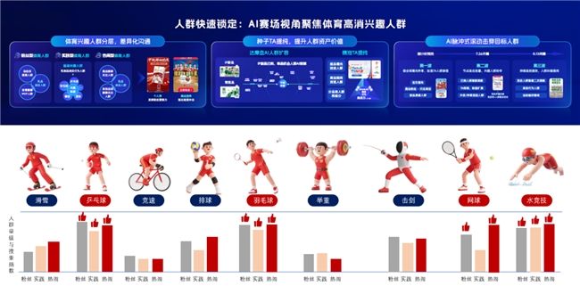 首先,通過挖掘用戶跨平臺行為關聯,識別奧運期間的高潛體育消費人群,聚類為“體育粉絲型”“健康實踐型”和“賽事熱鬧型”三大核心人群,并動態調整運營策略。例如,針對“乒乓賽事粉絲人群”推送“乒乓運動員同款IP產品”等內容。