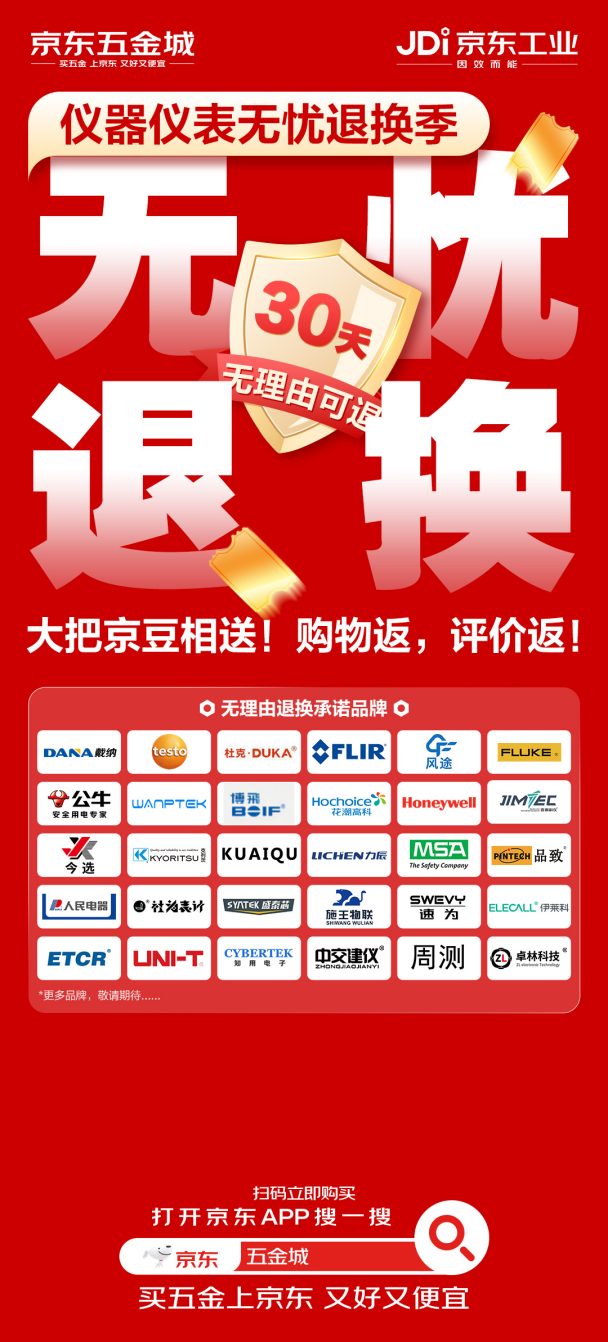 京東五金城相關負責人表示,儀器儀表作為工業生產的基礎裝備,其采購體驗直接影響企業生產運營效率。此次推出 30 天無理由退貨服務,是京東五金城立足企業客戶實際需求、升級工業品服務體系的重要舉措。未來,京東五金城將持續聯動優質品牌廠商,優化服務流程、豐富商品矩陣,以更完善的售后保障、更具性價比的福利政策,為企業客戶提供 “放心買、安心用” 的采購環境,助力企業降本增效,為工業高質量發展注入新動能。