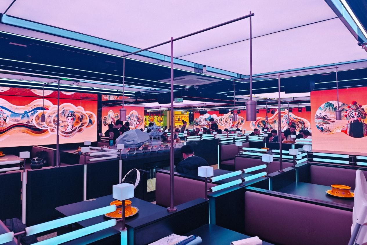2025年10月,海底撈旗下全新品牌——“撈寶街”全國首店在長春摩天活力城正式開業。全店部署了洲明科技各式LED顯示屏及超高清顯示系統,結合量身定制的數字虛擬內容(含十組主題場景,由AI算法實時驅動切換),讓傳統餐飲空間煥發全新體驗價值。