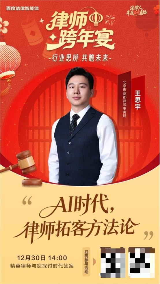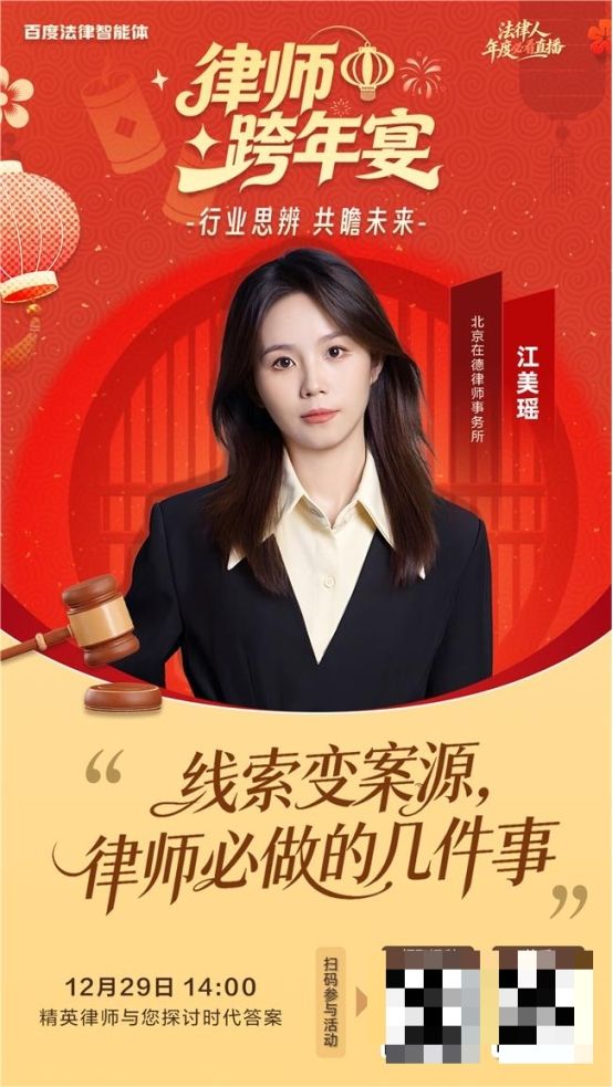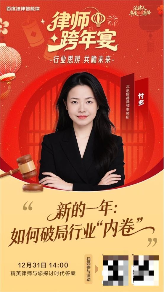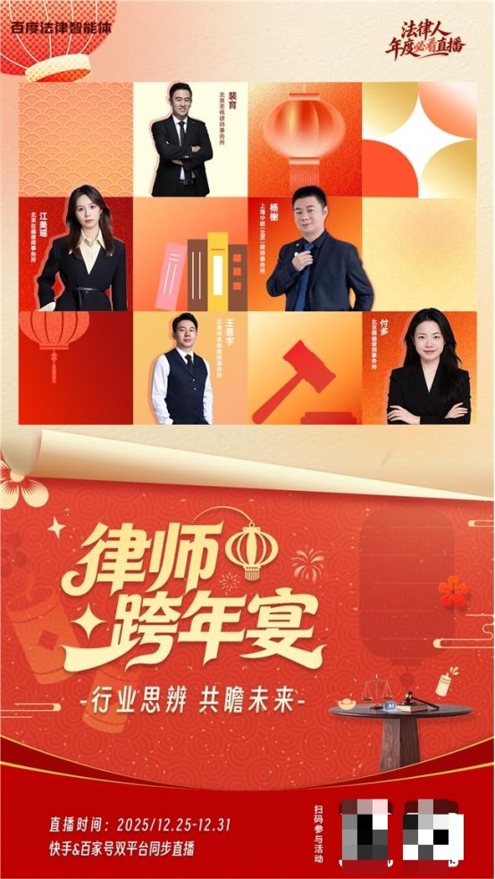 2025年12月25日至31日,百度法律智能體將開啟五場屬于法律人的思想盛宴——“律師跨年宴:行業思辨 共瞻未來”。這是一場年終的圍爐,也是一次思想的出發。