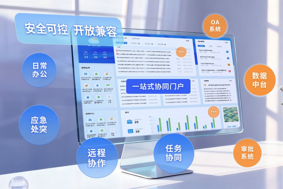結合私有化部署與國產化全適配特性,系統兼容不同廠商的國產軟硬件與政務云資源,通過統一數據規范與應用管理標準,既整合現有系統形成專屬辦公應用生態圈,又為后續新增業務系統提供標準化接入支撐,持續完善“安全可控、開放兼容”的生態閉環。