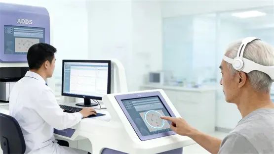 ADDS認知障礙篩查系統,采用非侵入式腦機接口技術,通過高精度電極實時采集腦神經信號,結合自主研發的AI深度學習算法,對記憶、注意、執行功能等多維度認知能力進行量化評估。僅需15分鐘即可完成篩查,準確率超90%,操作便捷,既適配三甲醫院精準診斷需求,也適用于社區大規模人群篩查與風險分層,為干預治療爭取黃金時間。