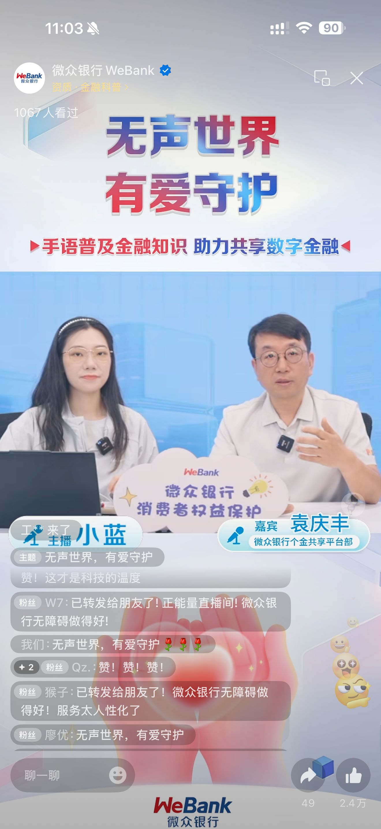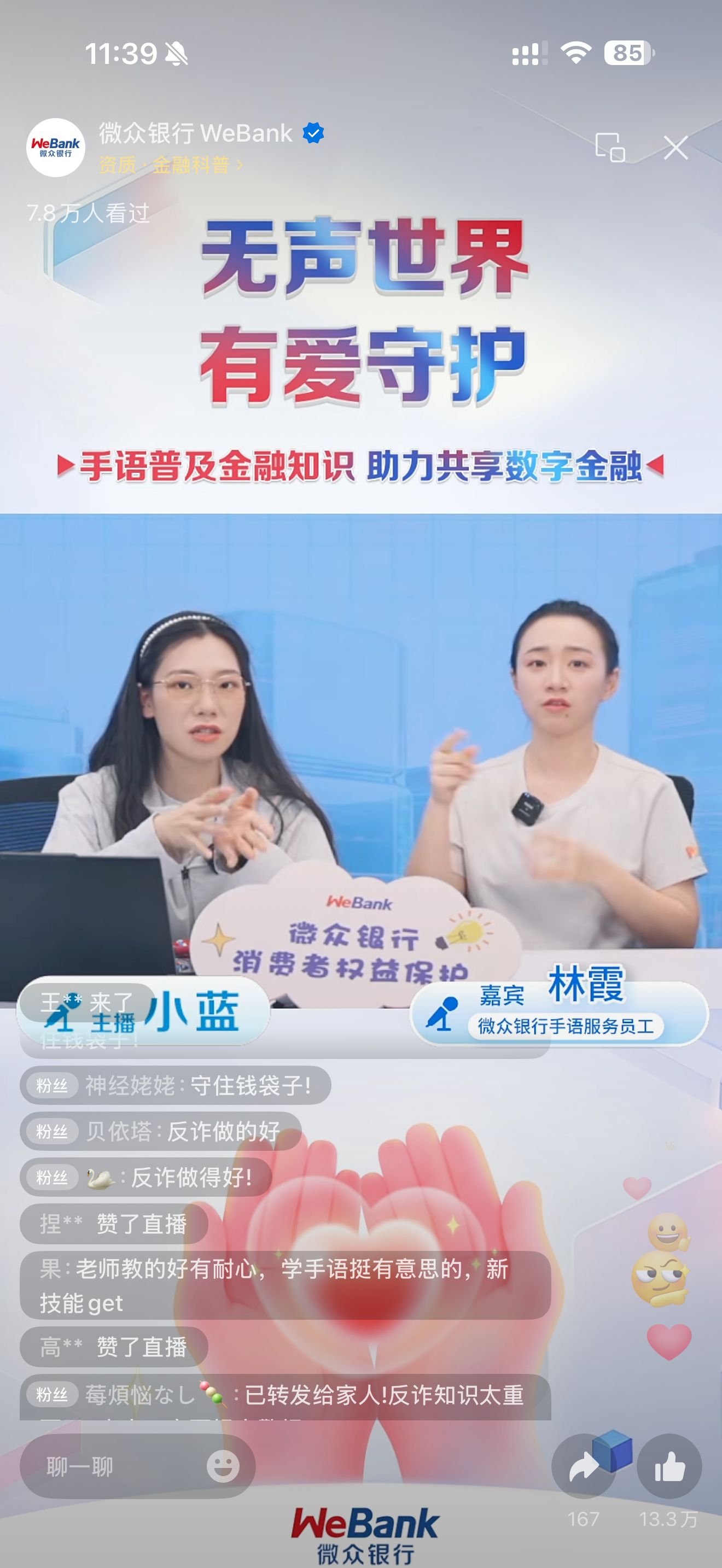 此次消保專場直播共吸引12.3萬人次在線觀看,收獲點贊16.8萬次,評論超7000條,反響熱烈。活動不僅彰顯了微眾銀行在無障礙服務建設上的探索與成果,也傳遞了其保障消費者權益、致力普惠金融的堅定承諾。未來,微眾銀行將繼續深化服務,為客戶提供更便捷、溫暖、安全的金融服務。