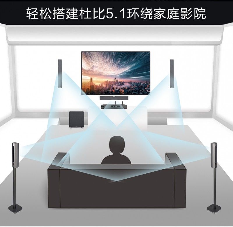 現在,想象一下:當樹懶“閃電”用0.5倍速說出“生——活——就——應——該——慢——”時,他那慵懶的嗓音從客廳每個角落緩緩流淌;當夏奇羊在演唱會高歌《Try Everything》時,澎湃的音樂如浪潮般將你包圍;夜晚的動物城雨林中,細微的蟲鳴、遠處的車流、不同動物的腳步聲……所有這些聲音層次分明,清晰可辨。